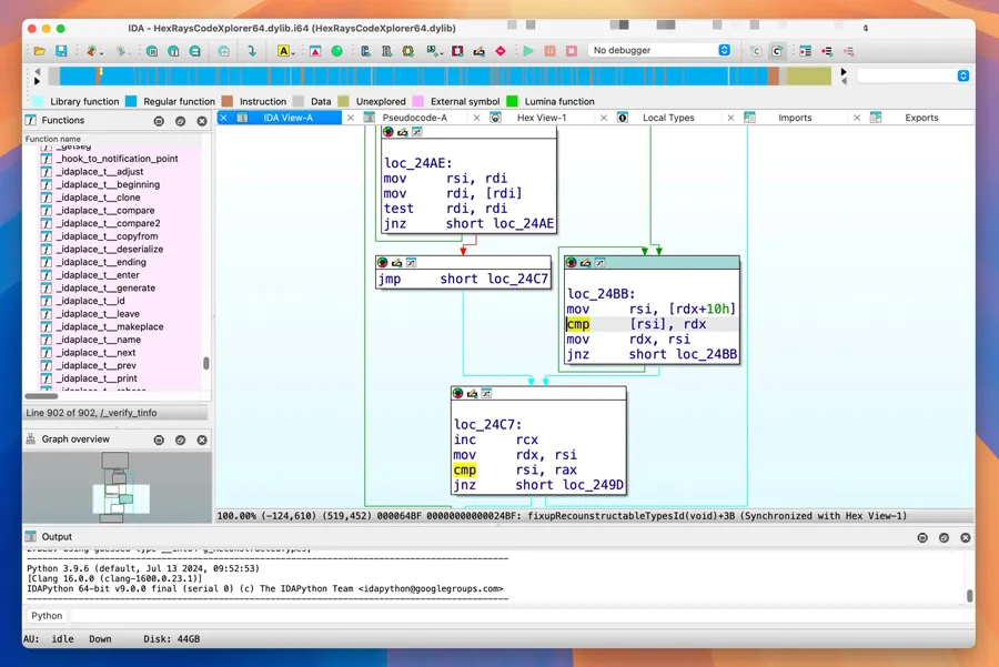 - 交互式代码分析:Graph View 提供可视化流程分析,使复杂的控制流和函数调用关系更加直观。