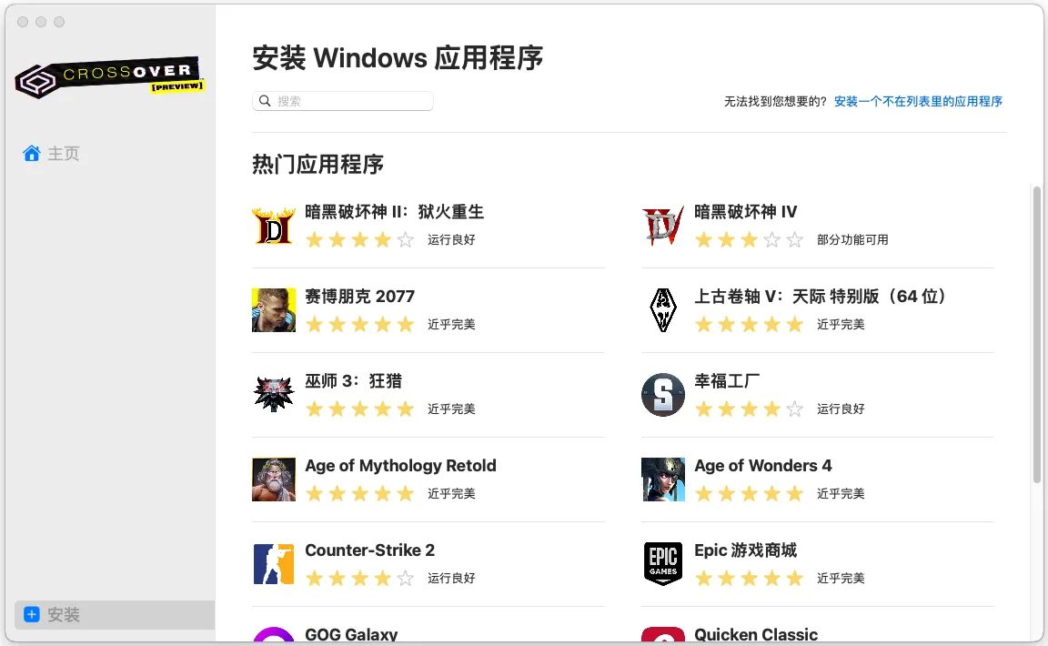 使用 CrossOver on Mac,你会感受到它为 Windows 程序打造的无缝适配体验。安装和运行 Windows 软件的过程相对简单,界面友好,能够自动检测并配置所需的运行环境。软件启动速度快,运行过程中稳定流畅,兼容了包括办公软件、设计工具、游戏等多种应用类型。在 Apple Silicon 机型上,CrossOver 通过内置的技术支持 Windows x86 程序的高效执行,确保用户使用体验不打折扣。整体使用中,减少了在虚拟机和双系统间切换的繁琐,让 Windows 应用在 Mac 上的使用更加便捷。
