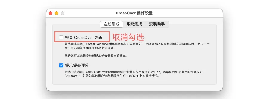 安装完成后按照说明进行激活,成功后请在偏好设置里关闭程序的检查更新