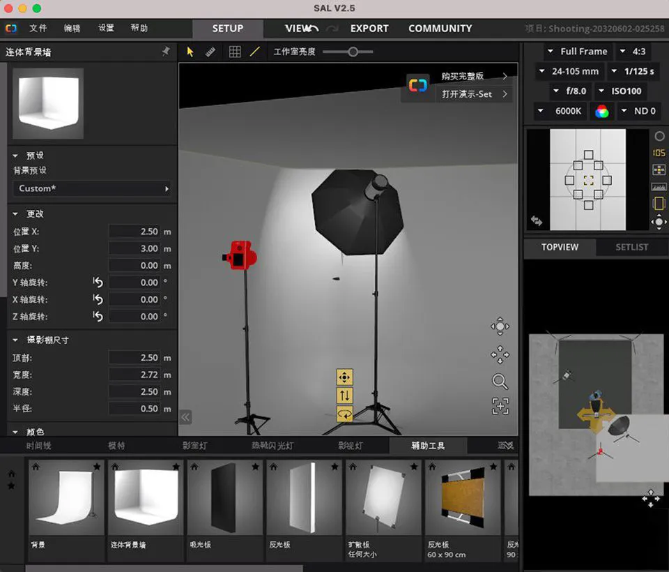 Set A Light 3D Studio 是一款专业的摄影照明设计软件,专为摄影师、摄影工作室和创意人员打造。它能够帮助用户在虚拟环境中模拟、设置和优化照明布局,从而提高拍摄效果和效率。通过这款软件,用户可以在 3D 空间内创建真实的摄影场景,摆放灯光、反射板、背景等元素,并即时预览照明效果。Set A Light 3D Studio 不仅适用于初学者,也适合经验丰富的专业摄影师,帮助他们在拍摄前进行详细的照明规划,节省实际拍摄中的时间与成本。