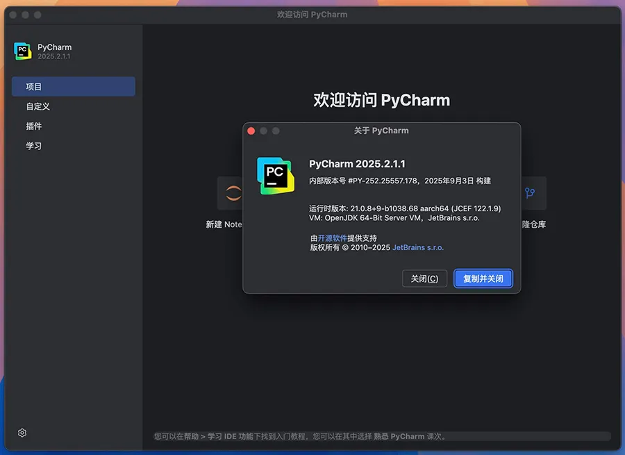 JetBrains Pycharm Pro v2025.2.1.1 中文激活版 Mac高级Python编程开发工具 (内含Intel+ARM版)