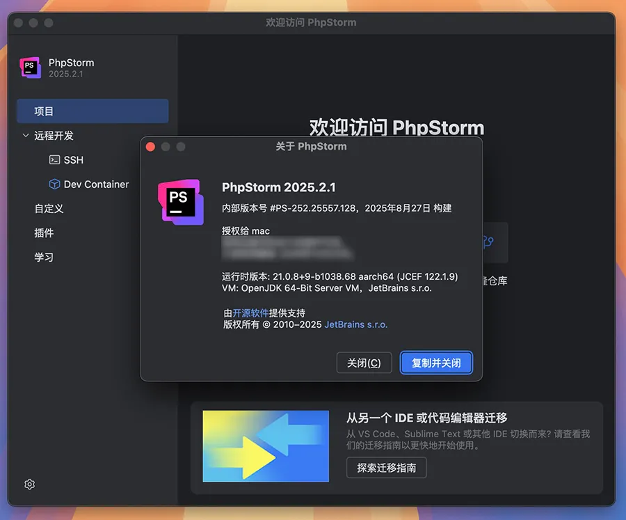 PhpStorm 是一款由 JetBrains 开发的专业 PHP 集成开发环境(IDE),专为高效开发现代 PHP 应用而打造。Mac版 PhpStorm 深度集成 macOS 系统的原生功能,支持最新的Apple Silicon芯片,运行速度快且资源占用稳定,是Mac平台上最受欢迎的PHP开发工具之一。它不仅支持标准PHP开发,还兼容HTML、CSS、JavaScript、TypeScript等前端技术,同时具备Laravel、Symfony、WordPress等主流框架的强大支持,适用于构建从网站到企业级应用的各种项目。