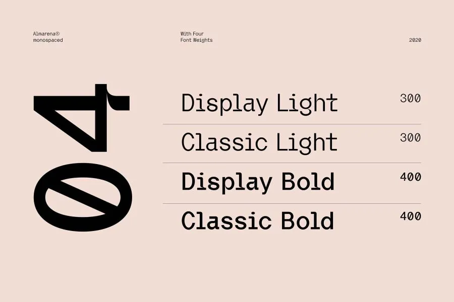 Almarena Mono是 Almarena字体系列的变体。它有2种样式(经典和显示),4种字体粗细和许多替代字符。它的轻微变化会保留其美学和完全的可读性。在计算机编码和打字机的特性之间,Almarena Monospaced取代了时间旅行者。它是最现代设计的热门选择,尤其是当她在节日的所有海报上穿着这种当前和华丽的荧光绿色礼物时。计算出的“T”和“S”都是起伏的,它的曲线和角度摩擦得如此自然和明显。故意事故的创造赋予了它非常特殊的特征。几何和灵活,我们以可测量的结构协调字母。字母像建筑游戏一样组合在一起。与乐高一样,Almarena Monospaced以孩子般的纯真来构建其结构:永恒和模块化,就像著名的带固定的积木一样。
