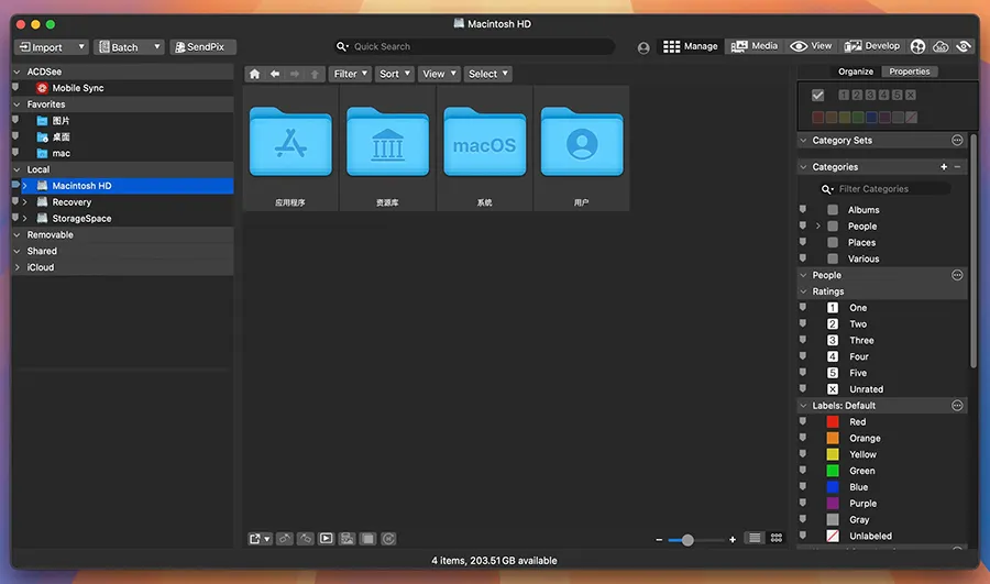 在 Mac 上使用 ACDSee Photo Studio,用户能够感受到界面简洁、操作流畅的体验。照片浏览快速顺畅,支持缩略图预览、全屏查看和幻灯片模式。编辑功能易于上手,调色、裁剪、修复和滤镜应用均反应迅速。批量处理工具让大量照片整理更高效,支持添加标签、评级和分类。整体体验贴合 macOS 使用习惯,无论是个人日常管理还是专业创作都十分便捷。