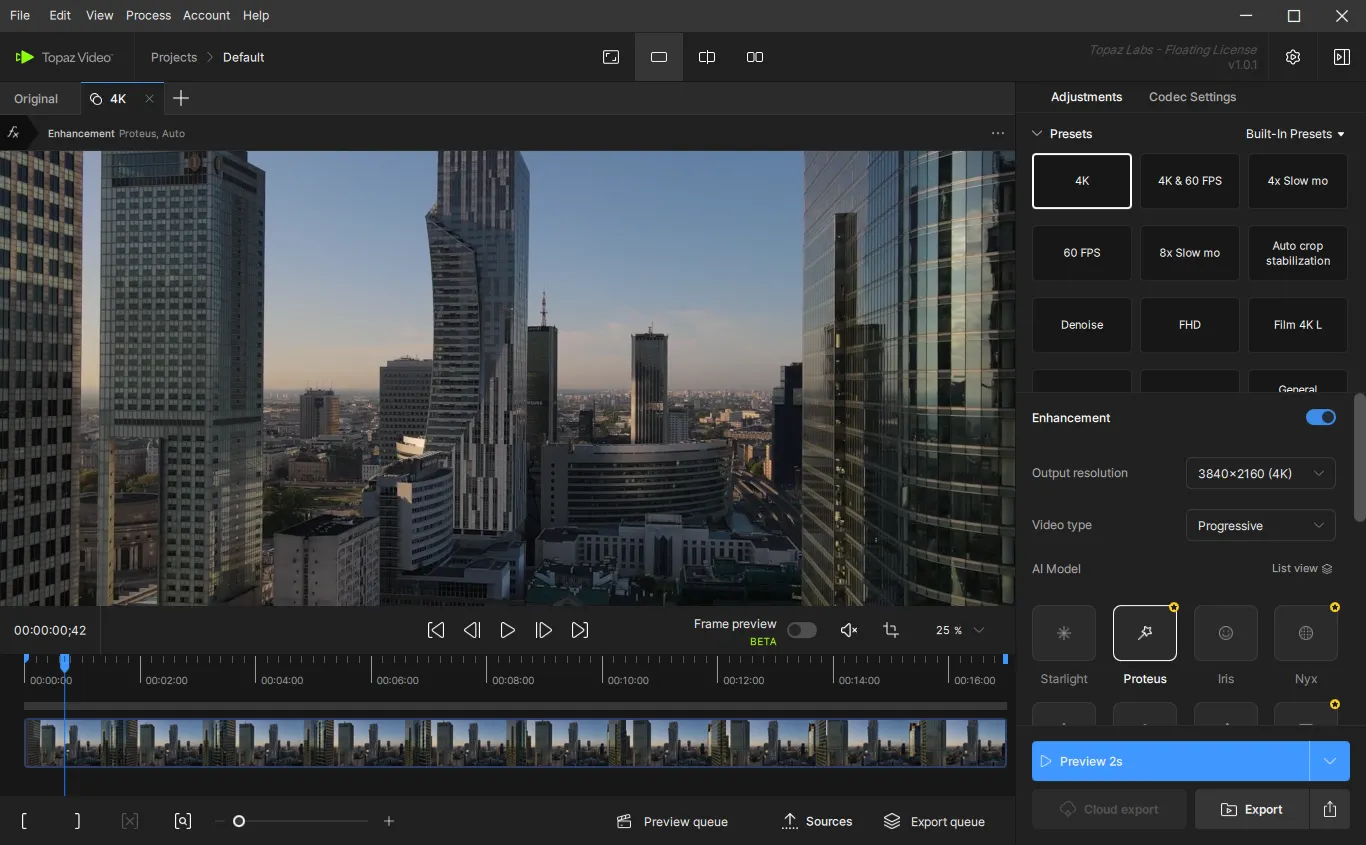 在 Win 上使用 Topaz Video ,操作体验直观流畅。导入视频后,用户可从丰富的 AI 模型中选择所需的处理方案,如清晰化、升频、插帧等。软件界面设计合理,处理进度清晰可见,导出结果质量出色。对于希望将老旧 SD 视频提升至高清甚至 4K 的用户而言,Topaz Video 是不可替代的工具。