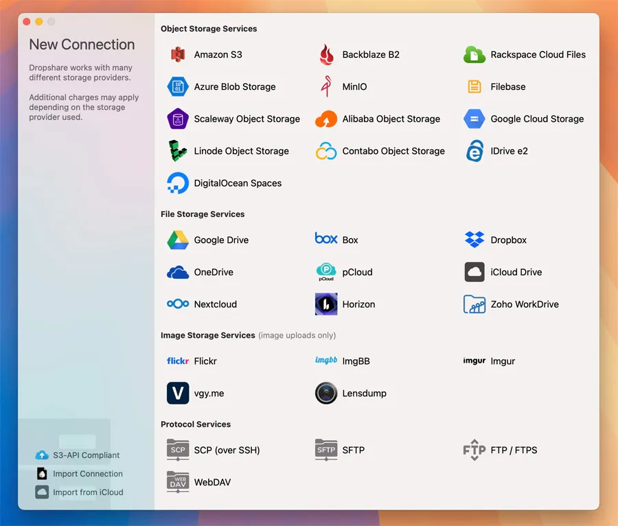 Dropshare是一款专为Mac用户打造的安全文件分享与截图上传工具,适用于需要快速上传文件、截图、视频并生成分享链接的用户。与传统的网盘服务不同,Dropshare强调的是私有化存储与高度自定义,用户可以将文件直接上传至自己的服务器或第三方云服务(如Amazon S3、Dropbox、Google Drive、Backblaze B2等),从而确保数据所有权始终掌握在自己手中。其Mac版凭借出色的系统集成和自动化能力,成为设计师、开发者、内容创作者等专业用户的首选文件分享工具。