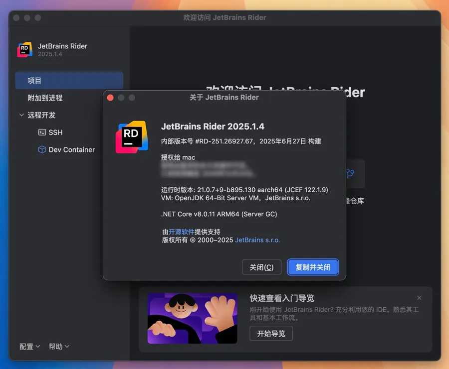 JetBrains Rider v2025.2.2.1 中文激活版 Mac跨平台.NET IDE集成开发RD (内含Intel+ARM版)
