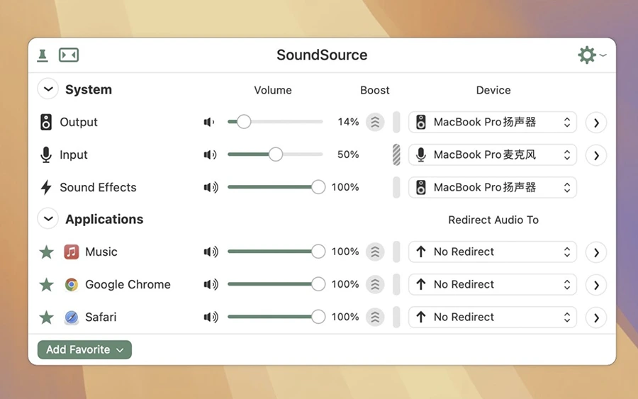 SoundSource for Mac 是一款音频控制工具,中文常被称为 音频源管理器。它能够精确控制系统与应用程序的音量、输出设备和音效处理,让用户获得比 macOS 原生更灵活的音频管理体验。SoundSource 既适合音乐发烧友,也适合日常办公和影音娱乐用户,无需复杂设置,就能轻松掌握所有声音的走向与效果。对于习惯在 Mac 上进行音频调节的人来说,它堪称必备神器。