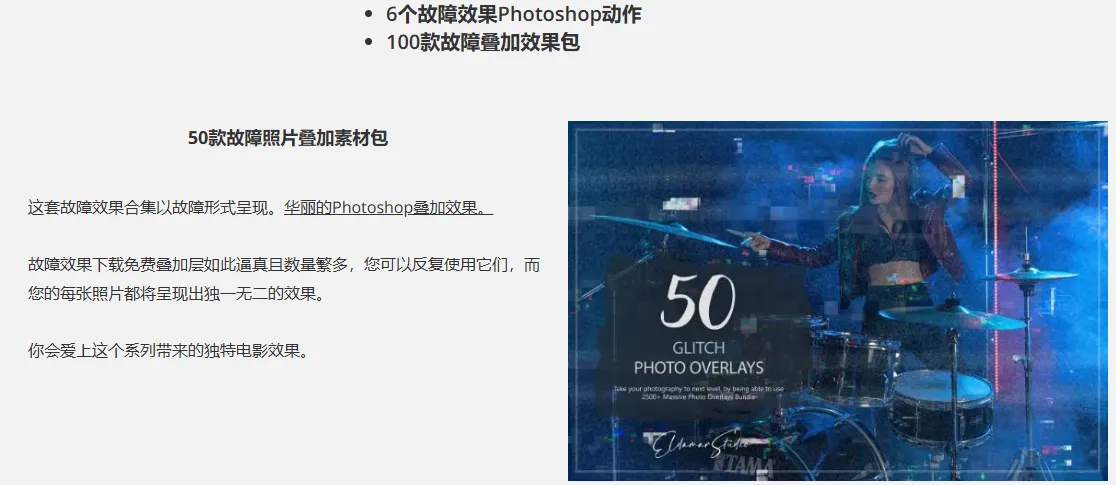 文件包含(100+故障特效叠加,PS动作);文件大小:326M