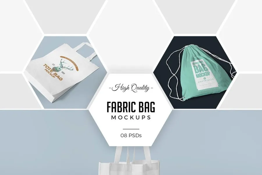 - 抽绳袋模型:设计精美的抽绳背包模型可以帮助您展示超出您预期的商品设计和品牌设计。这些模型附带 4 个从不同角度拍摄的 PSD,具有可定制的设计、琴弦的颜色和背景。