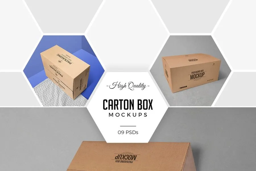 - 纸板箱模型:使用这些逼真的纸板箱模型展示您的品牌和包装设计,并让它们适用于您的更多设计。这些模型提供 3 种不同风格的 PSD,具有不同的姿势和角度。您还可以根据自己的喜好调整阴影、效果和背景。
