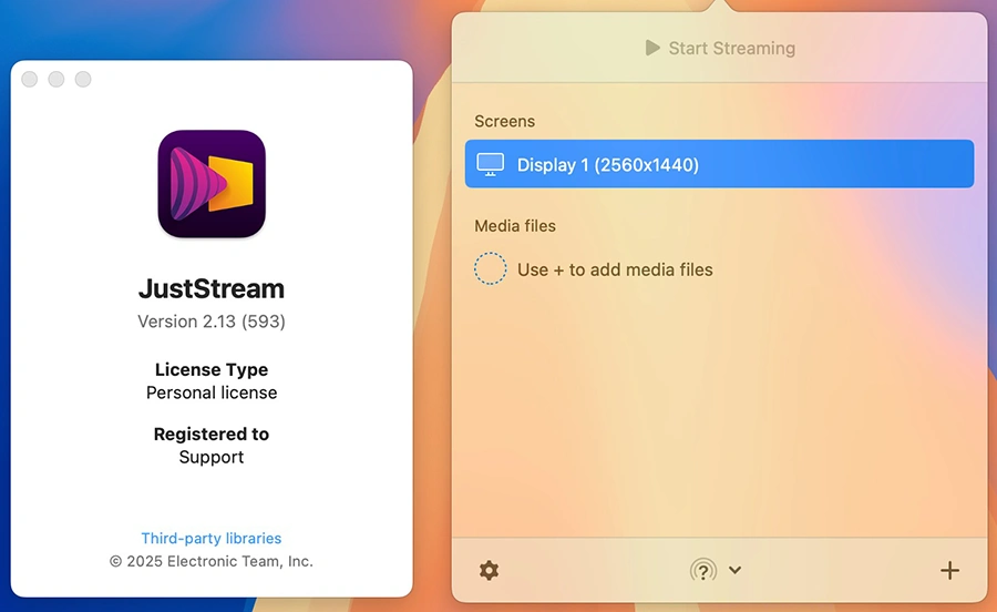 JustStream PRO 是一款功能全面、操作简便的 Mac 投屏与流媒体播放工具,支持多种设备的无线投屏及高清视频播放,具备字幕支持、音轨管理、外部音频同步等实用功能。无论是家庭影院体验、商务演示,还是远程协作,JustStream PRO 都能提供高质量的无线投屏解决方案。