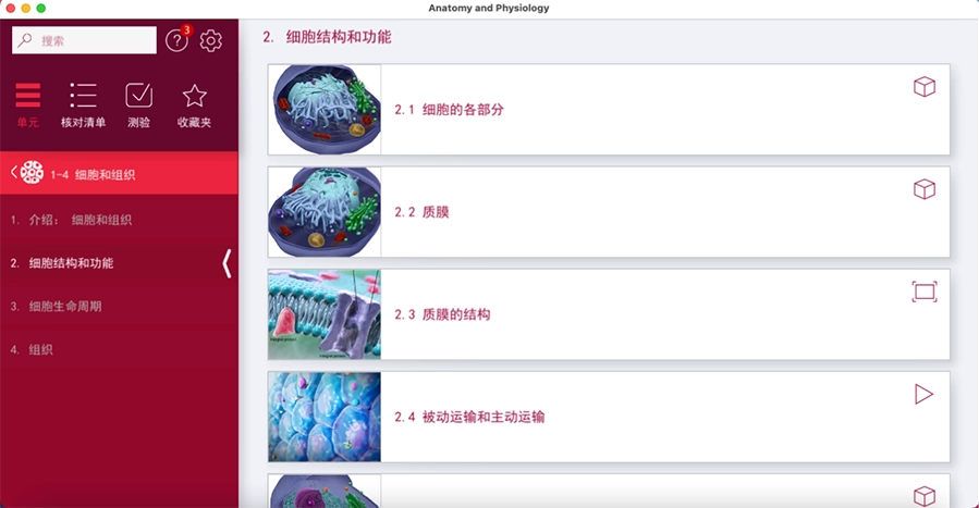 Complete Anatomy 提供了极其精细、系统的人体3D模型,这些模型涵盖了从宏观到微观几乎全部的人体解剖学结构。通过其直观的3D模型和详细的教学视频,用户可以更轻松、更快地掌握解剖学知识。