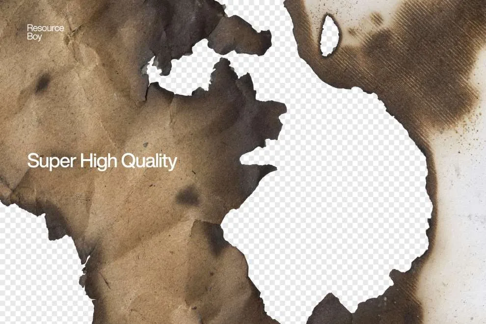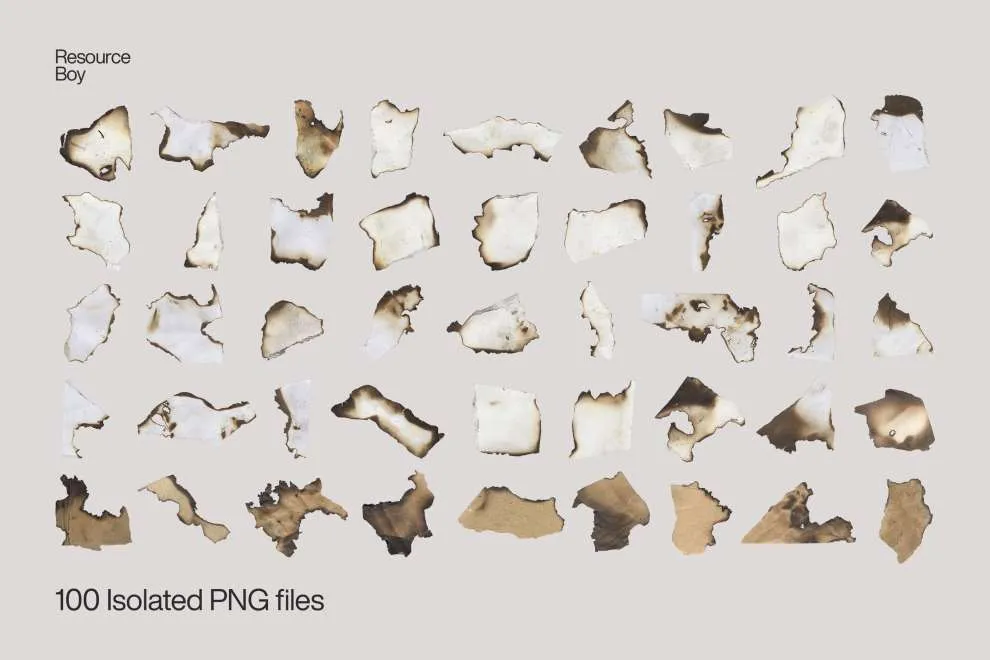 100张燃烧纸片边缘烧焦纹理艺术设计PNG素材 100 Burnt Edge Paper Textures