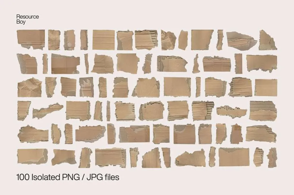 100个撕裂纸板纸箱边缘纹理创意设计PNG图片素材 100 Torn Cardboard Textures