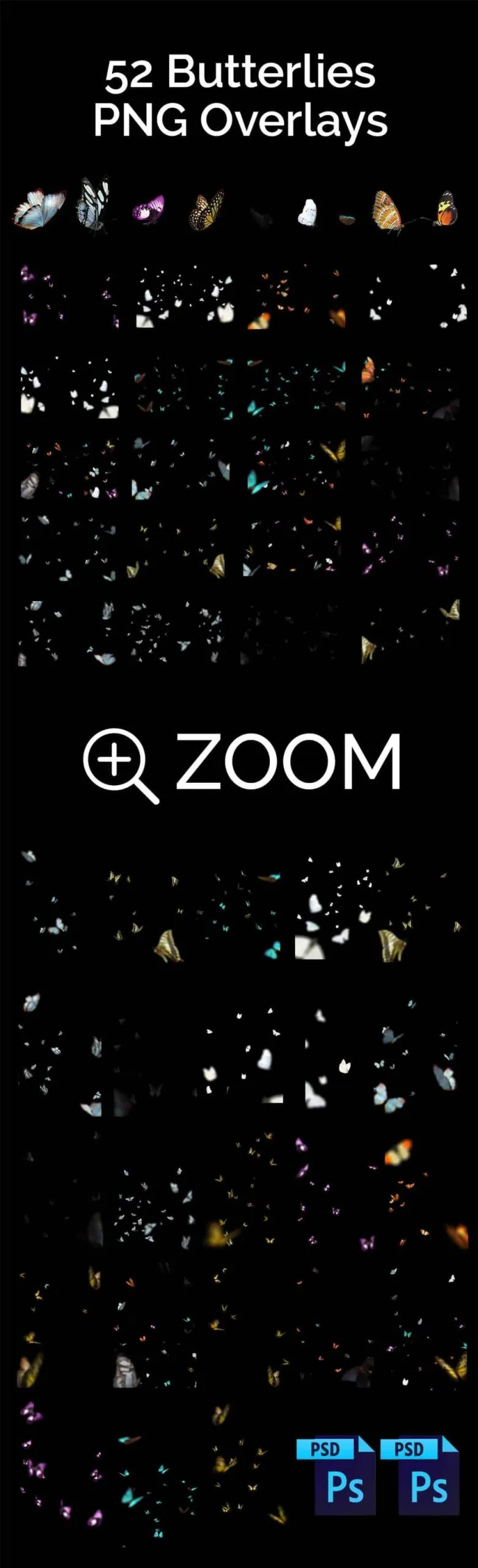 52张高分辨率漂亮蝴蝶照片叠加PNG素材+PS动作 52+ Butterflies Photo Overlays