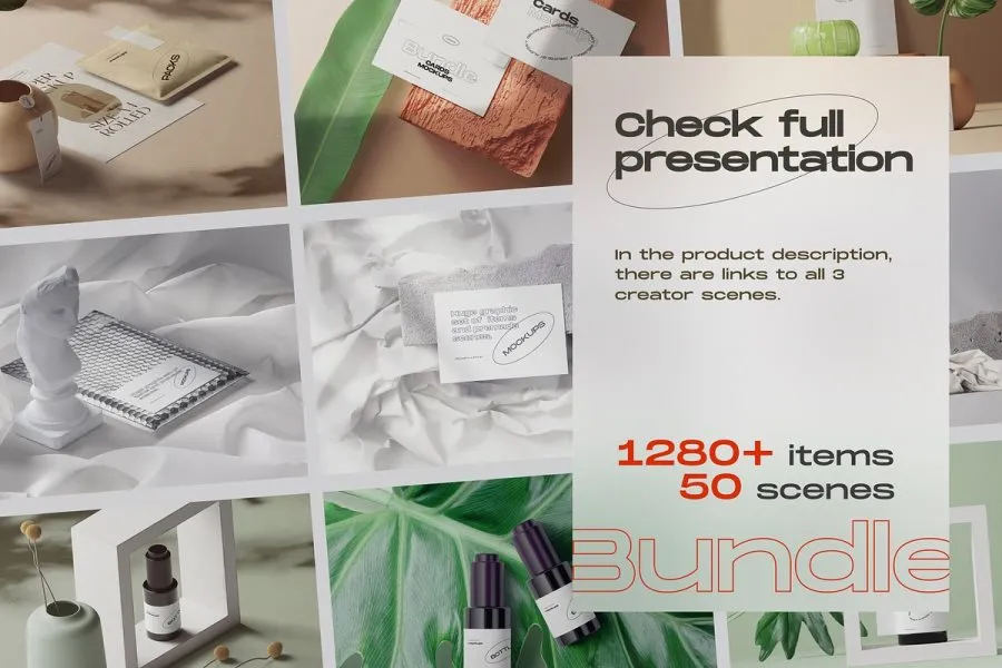 场景创建器 2 : 3 合 1 捆绑包。巨大的独特物品和预制场景的图形集。使用这套工具,您可以创建精美的演示文稿。使用它的地方几乎没有限制:品牌、标题、Web 项目、艺术、书法、版式等等。它们总共包含1280 个独特的项目,50 个预制场景(15 psd)