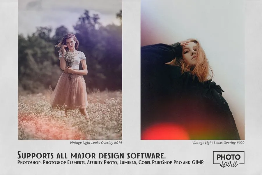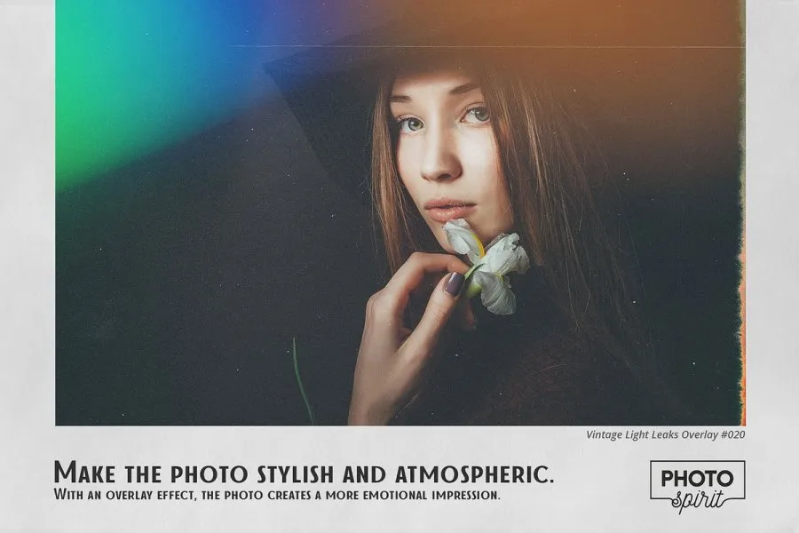 适合业余爱好者和专业人士。彩色和黑白照片上的效果极佳。为了方便起见,添加了在屏幕模式下选择和叠加叠加的操作。这在 Photoshop 和 Photoshop Elements 中都有效。复古漏光叠加可用于任何支持屏幕模式下图层叠加的图形编辑器。