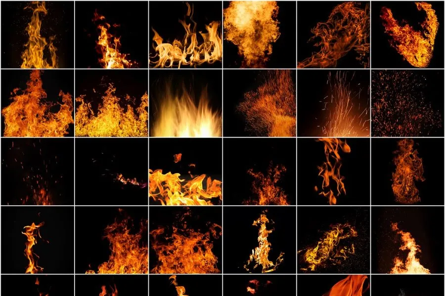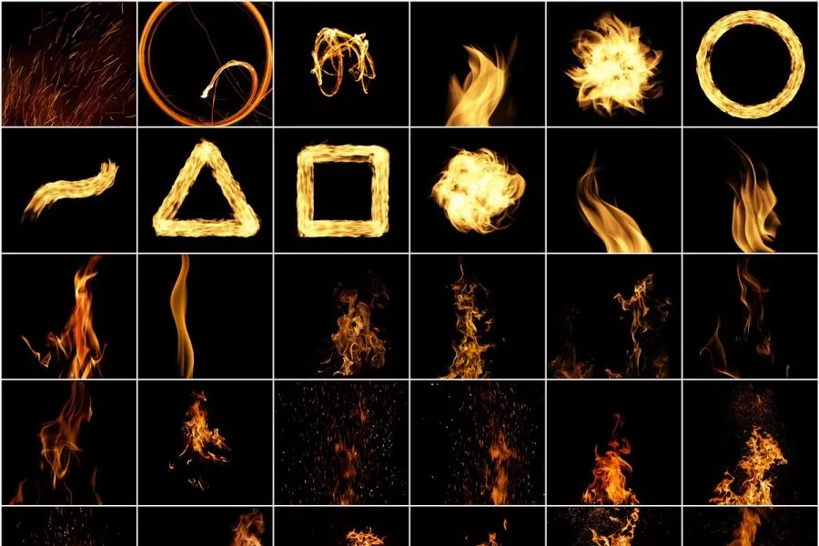 60张真实火焰燃烧火星粒子火花火苗烈焰框架创意设计图片素材 Fire Burning Effect Overlays