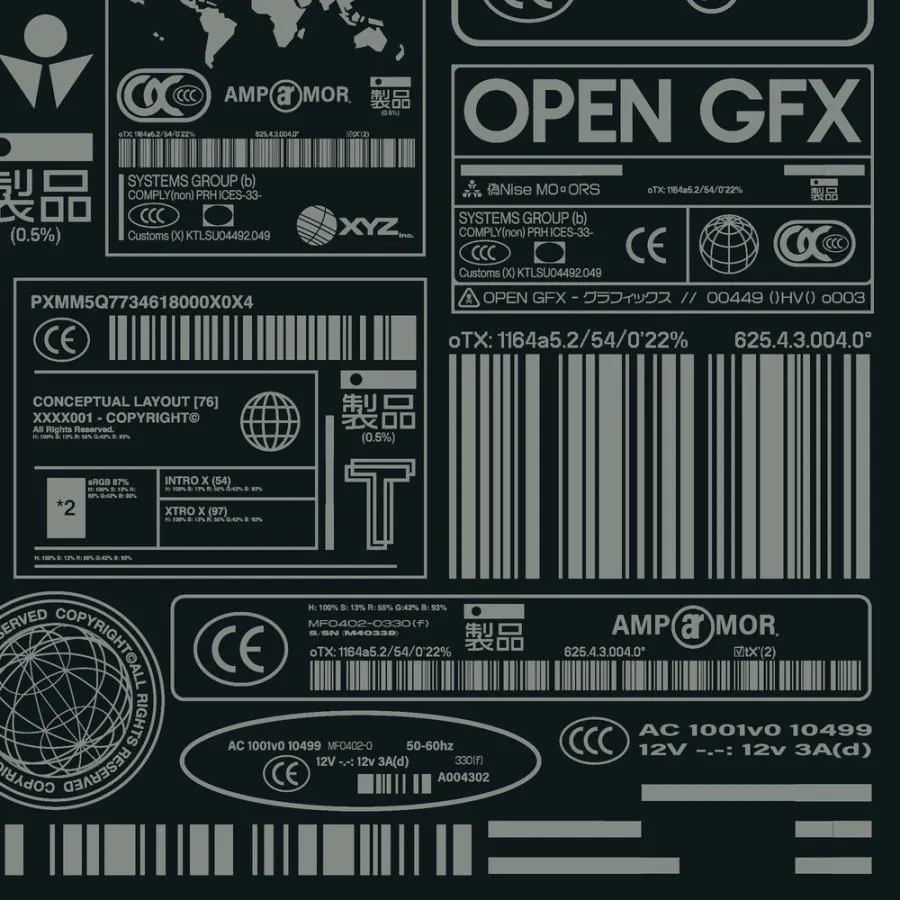 107个工业生产3C质检安全环保防伪物流条码认证标签矢量素材 Hvnter – Label Asset Pack (vol.1)