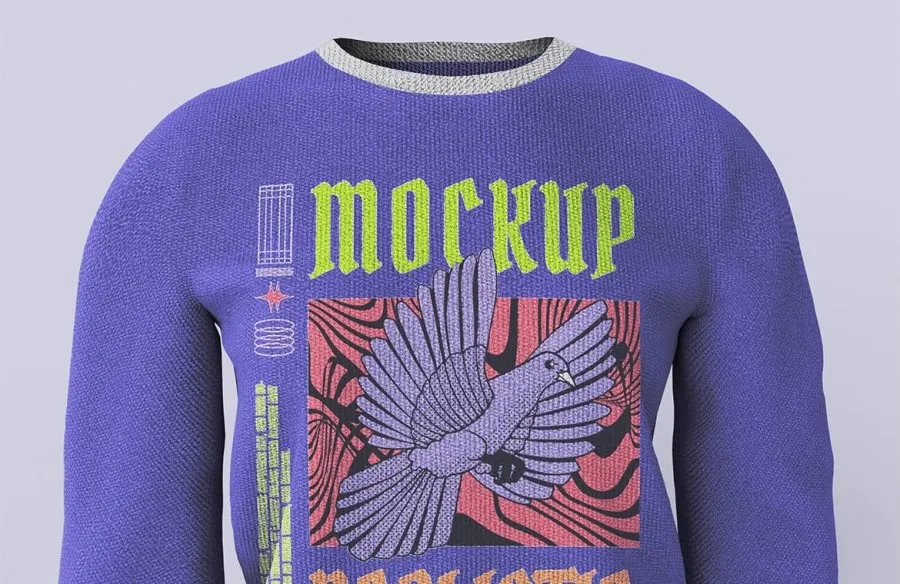 在圆领毛衣模型上以更有效的方式展示设计。您可以将其用于品牌设计、宣传材料、广告、徽标设计、图案等。通过智能对象轻松个性化您的品牌设计,并将背景更改为任意颜色。