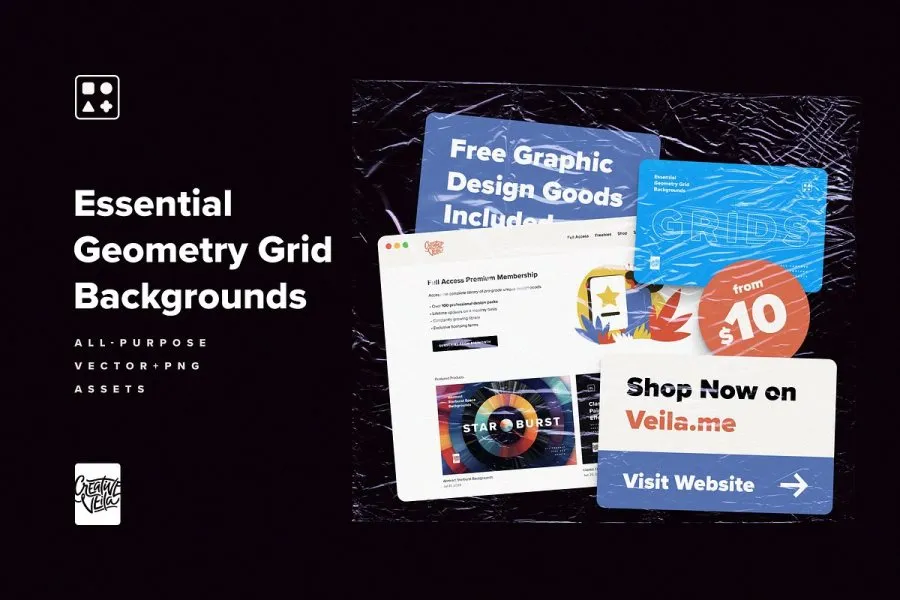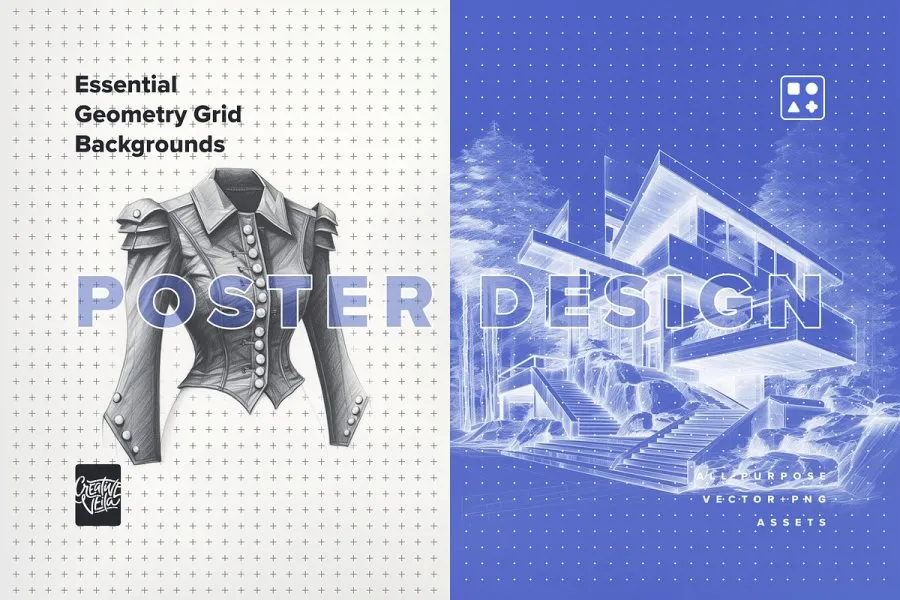 网格不仅仅是一种设计工具,它本身就是一种设计元素。许多设计师使用网格来创造令人惊叹、和谐的视觉效果。我们的 Essential Geometry Grid Backgrounds 包是一个提升您设计的工具包。