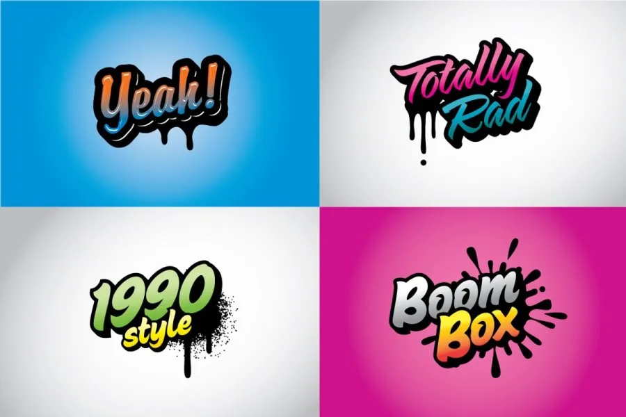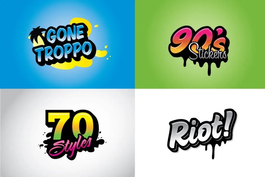 70 种适用于 Illustrator CS3+ 的时尚彩色一键文本样式。包括 15 种水滴矢量形状、帮助文件和图形样式库。