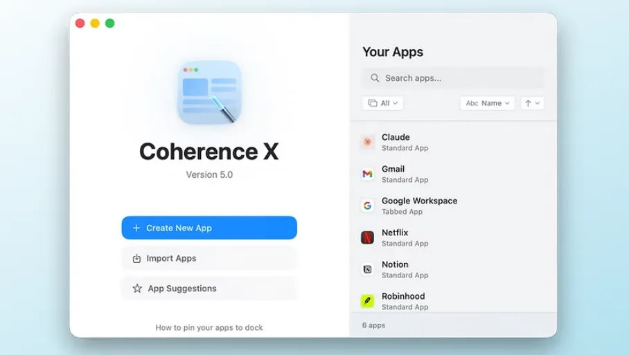 Coherence X for Mac 是一款专注于将网页应用转换为独立桌面应用的工具,国内常被称为 网页转应用助手。它允许用户将常用网站,如 Gmail、Notion、Slack、YouTube 等,一键打包为独立的 Mac 应用,拥有 Dock 图标、独立窗口和原生通知支持。相比直接用浏览器访问,Coherence X 让网页工具的使用体验更接近原生应用,既减少了浏览器的分心,也能更好地融入 macOS 的使用习惯,非常适合注重效率和界面整洁的用户。