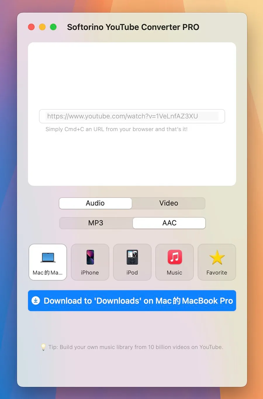 多格式转换:Softorino YouTube Converter PRO 支持将视频转换为多种常见格式,包括 MP4、MP3、AAC 等,确保用户能够在不同设备和平台上播放视频和音频文件。无论是想要将视频保存为音频文件,还是转换为适合移动设备的格式,这款软件都能轻松应对。