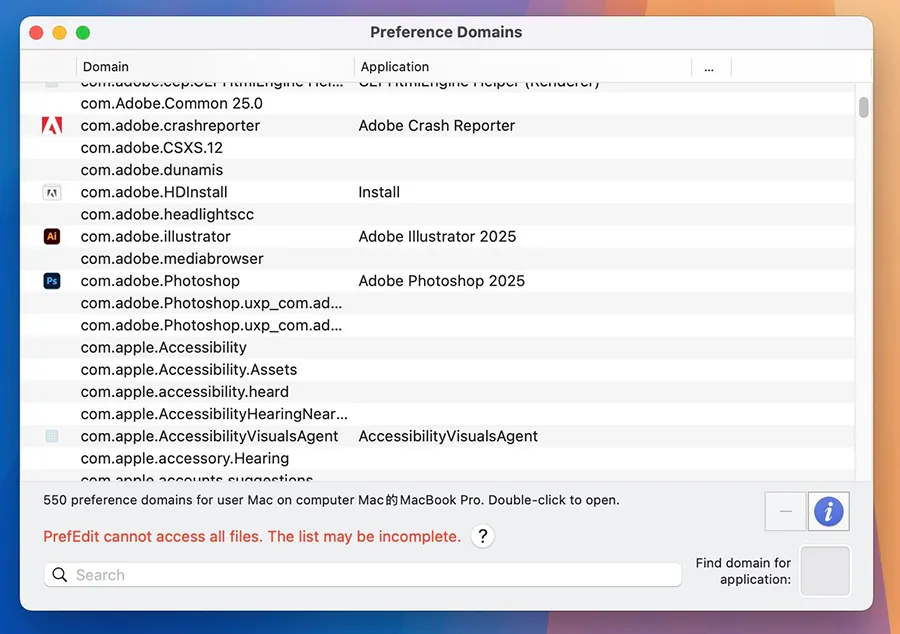在 Mac 上使用 PrefEdit 时,整体体验兼具直观性与专业性。应用会列出所有可用的偏好域(preference domains),包括被沙盒保护的应用设置,用户能够清晰地理解不同偏好设置的层级与覆盖关系。编辑过程中,支持撤销和恢复操作,并且可以在 XML 与二进制 plist 格式之间灵活切换。虽然操作具有一定的技术门槛,但 PrefEdit 的界面设计和检索功能降低了使用难度,让复杂的系统调优工作更高效。