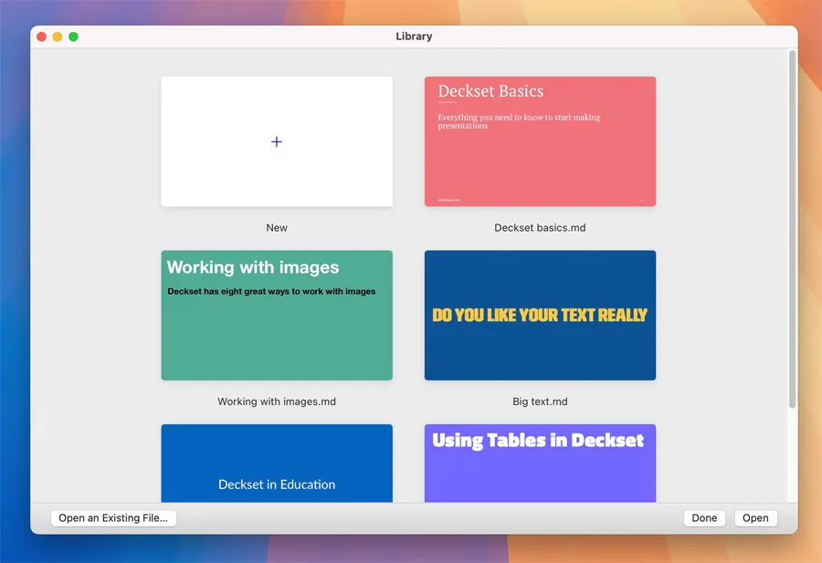 Deckset 所有内容均存储于本地 Markdown 文件,无需登录账户或上传数据,完全脱离云端依赖,确保数据私密性。