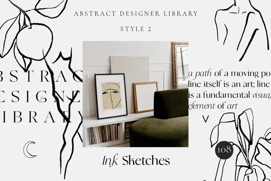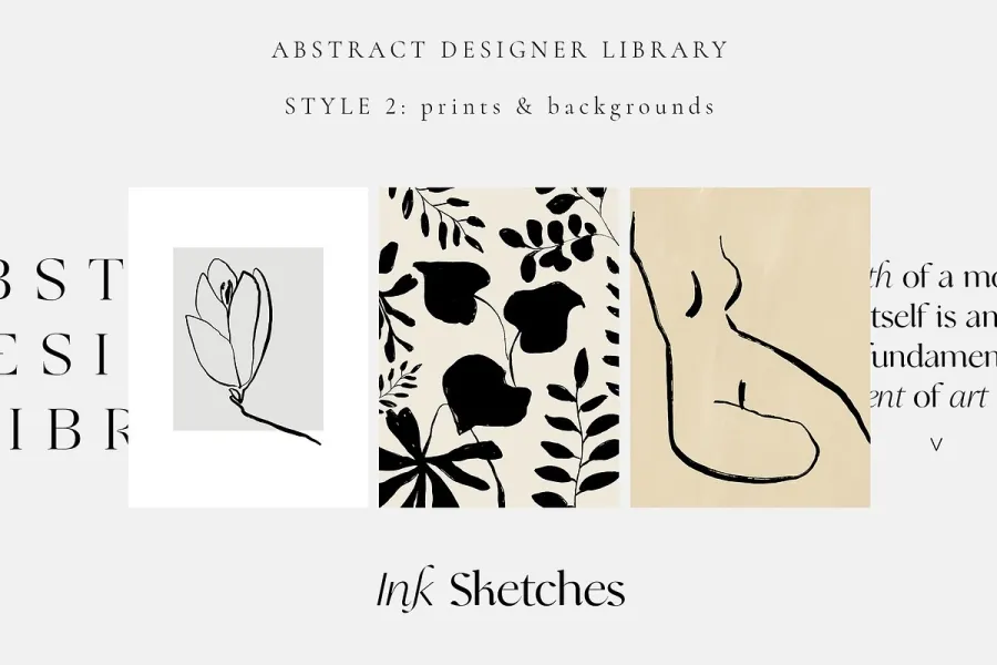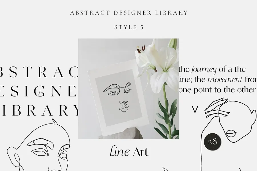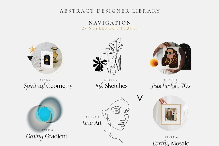 抽象设计师图书馆 – 27 种不同风格的精品店!您可能已经注意到,我非常喜欢尝试各种技术、媒介和对经典风格的诠释,以获得更现代、更时尚的感觉。因此,这个庞大的系列自然而然地诞生了,献给我对抽象和极简趋势的所有热爱和激情。