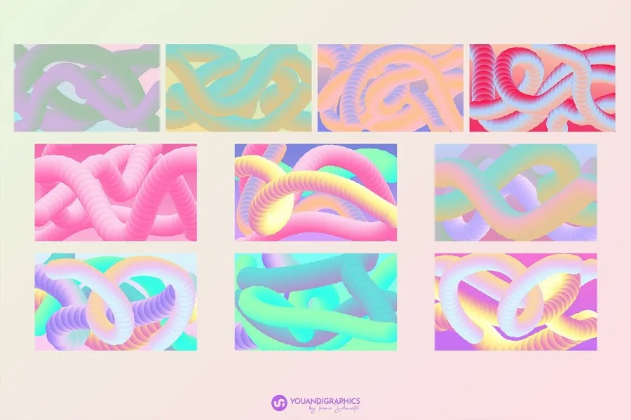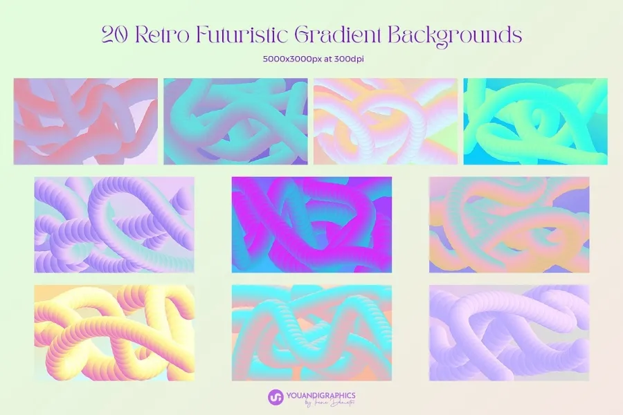 我很高兴向您介绍复古未来派渐变背景,这是一组带有抽象浮动元素的彩色背景。在此集合中,您将找到 20 个高分辨率背景,这些背景具有各种美丽的颜色组合,纹理精美,也可编辑(在 Adobe Photoshop 中)。我还包含了 60 个单独的 PNG 元素,因此您可以完全发挥创造力并提出自己独特的设计:)
