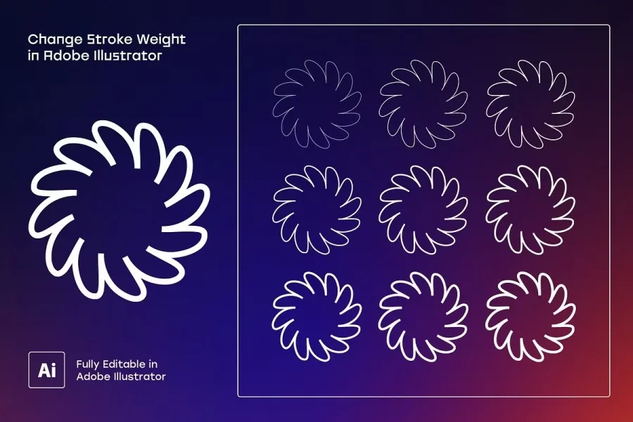 颜色可在 Adobe Illustrator 中自定义。 噪声效果可在 Photoshop 文件中根据需要进行编辑(颗粒纹理包含在单独的图层中)。