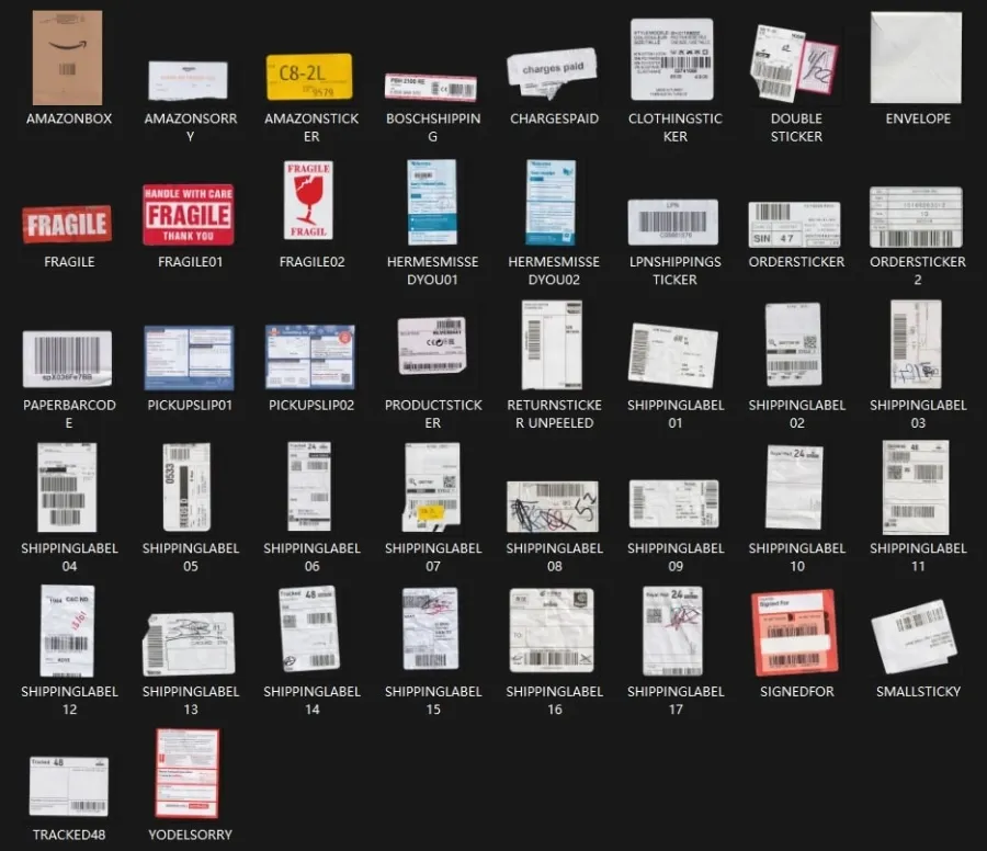 40 多个配送主题资产:包装标签、邮资标签、送货贴纸、送货单/卡等。