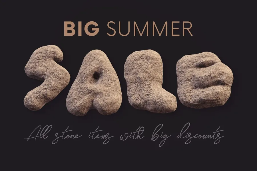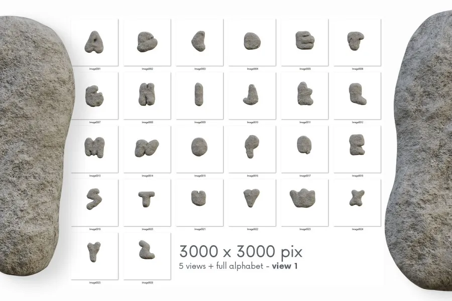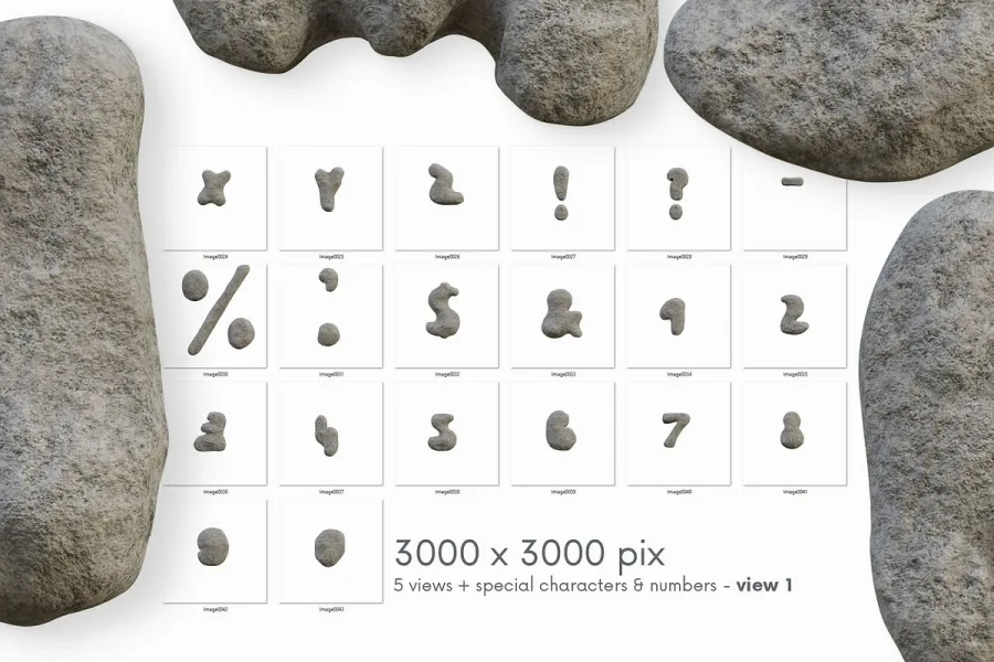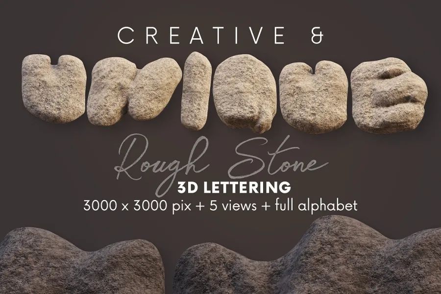 高分辨率逼真的 3D 粗糙石头或打火石风格字体渲染(3000×3000 像素 – 但字体尺寸略小)。非常适合您的标题、海报、广告 – 任何网络或印刷项目。