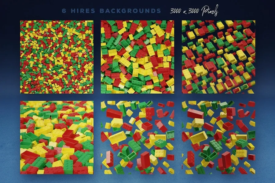 - 6 张高分辨率 PNG 乐高背景(3000 x 3000 像素)