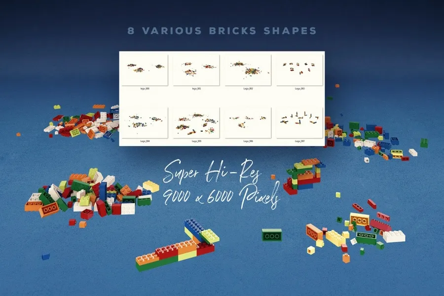 - 8 张高分辨率 PNG 各种砖块形状(9000 x 6000 像素)