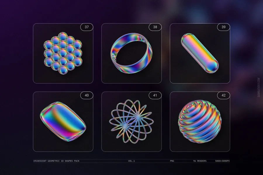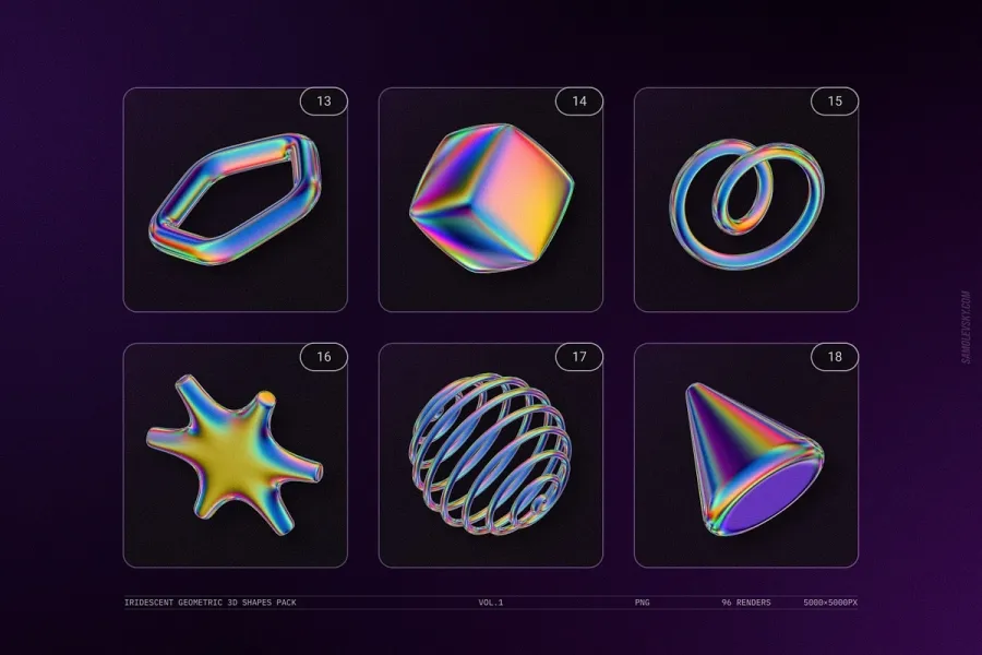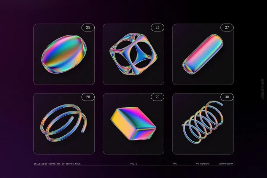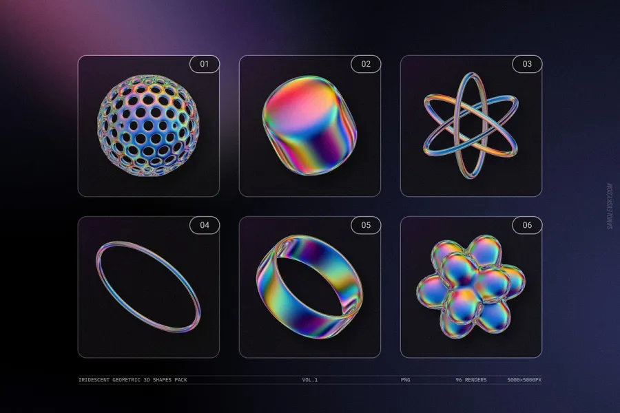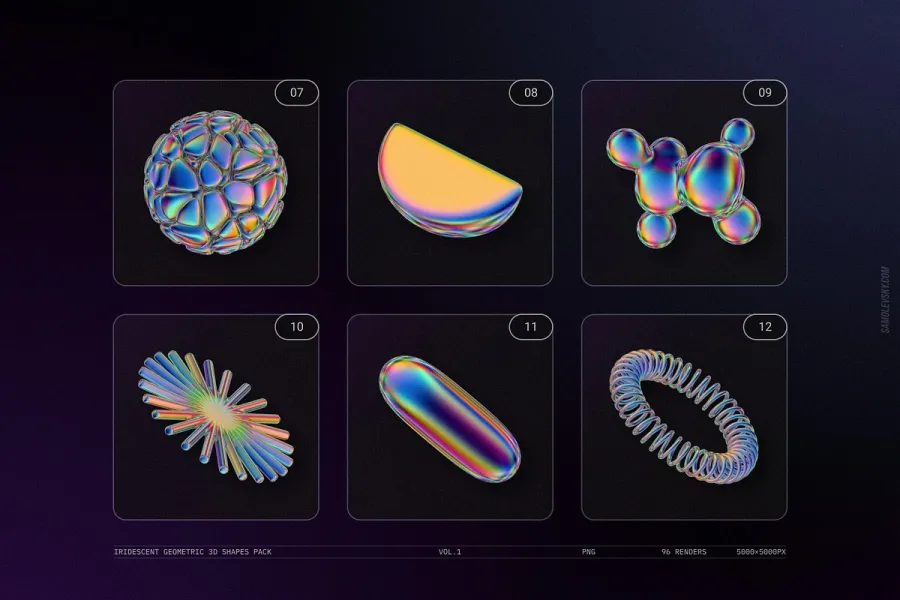 关于产品:Iridescent Geometric 3D Shapes vol.1