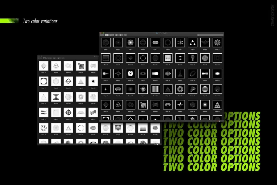 - PSD 文件: 200 个 Adobe Photoshop 文件,使用与分辨率无关的矢量形状图层保存。这些文件还与多种领先的图形编辑软件兼容,包括 Affinity Photo、Pixelmator Pro、Photopea、Procreate、Artstudio Pro、Gimp 等。