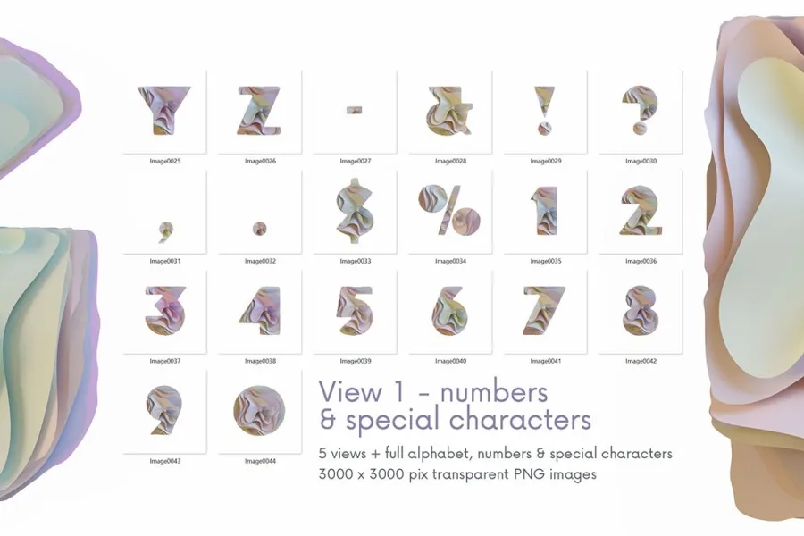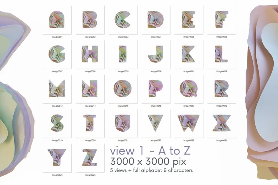 - 透明 PNG:字母(3000×3000 像素 – 但字母尺寸稍小)
