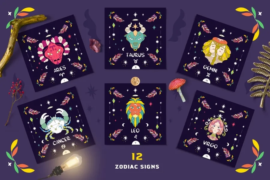 - 12 星座卡片 + 星座圈 AI / EPS / PNG / JPEG