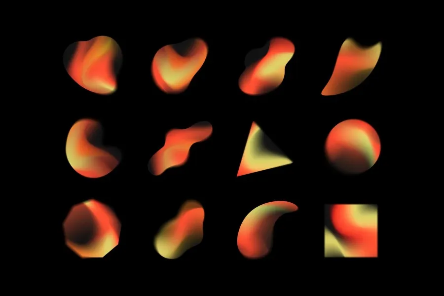- 12 种 PNG 格式的渐变形状,有 6 种配色方案可供选择(4000×4000 像素,300 dpi);