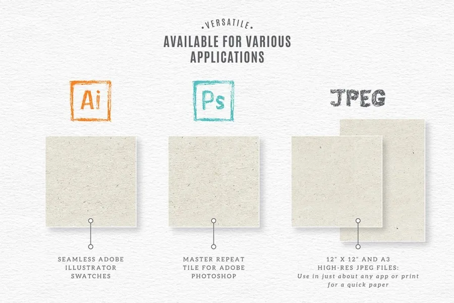 - Adobe Illustrator 样本:Adobe Illustrator CS3 或更新版本。注意:虽然纹理是无缝样本,但它们不是矢量图,而是高分辨率图像文件。