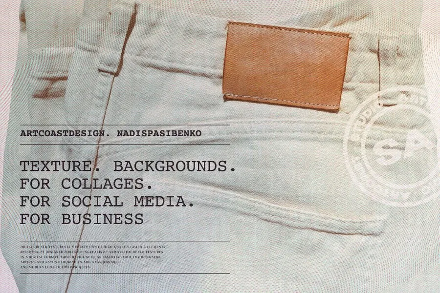 欢迎来到牛仔布和时尚的世界,我们独特的数字图形集“Jeans. Denim. Graphic Set”该系列包含 43 种不同的牛仔布元素,可帮助您打造令人惊叹的设计。包括口袋、磨损边缘和牛仔布背景,这里的每个元素都反映了牛仔服装的真实风格。元素的尺寸范围为 1500×1500 像素、300 DPI,确保高质量和多功能用途。