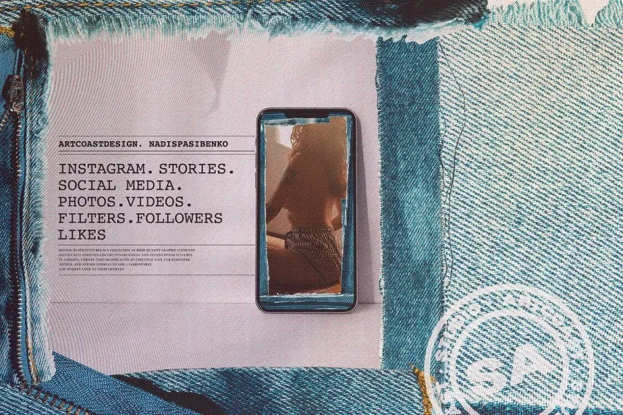 此外,该套装还包含 31 个独特的图形故事,分辨率为 1920×1080 像素,300 DPI。这些故事将激发您的社交媒体关注者,彰显您的个性和风格。利用我们的数字图形集“Jeans. Denim. Graphic Set”领先一步,并通过这一令人惊叹的组合将您的创意变为现实。”
