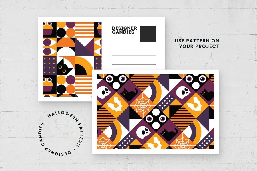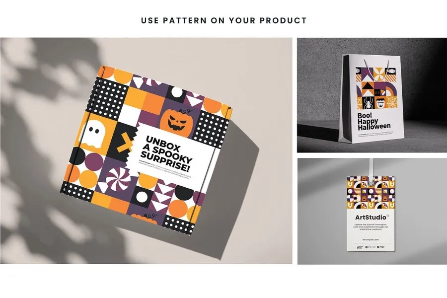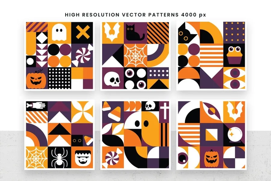 现代风格的万圣节图案和背景设置 • Illustrator Ai、矢量 EPS、剪贴画 PNG 和 SVG