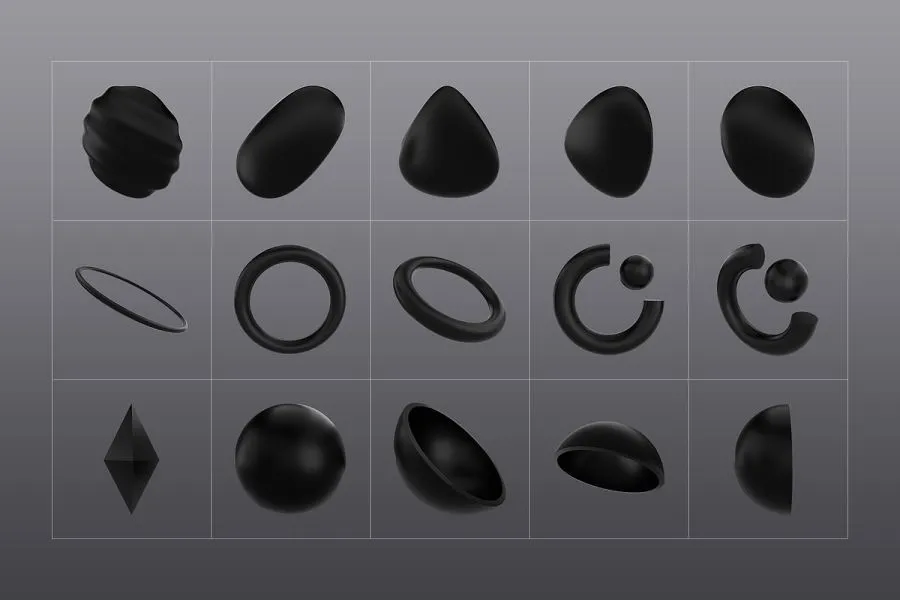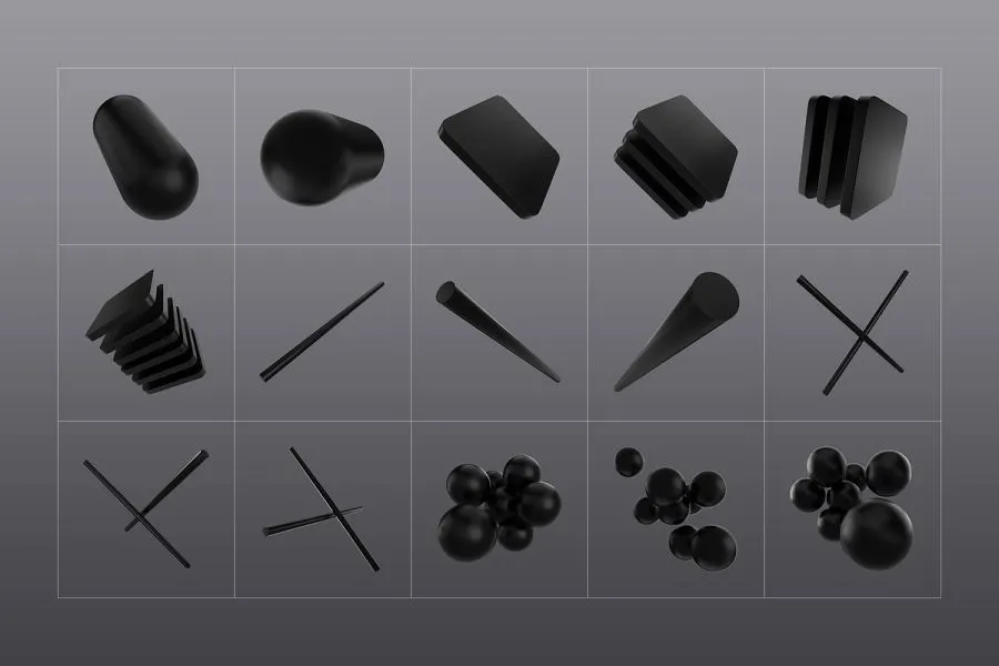 使用我们独家的设计素材,激发您的创造力,提升您的项目!这套高级素材库包含120 个高品质的黑色几何和抽象 3D 形状,旨在节省时间和成本。这些素材非常适合那些希望轻松提升作品质量的设计师,使用起来非常简单 – 只需将它们拖放到您的项目中即可。让您的设计焕然一新,并以惊艳的专业效果打动客户。千万不要错过这款每位设计师必备的工具包!