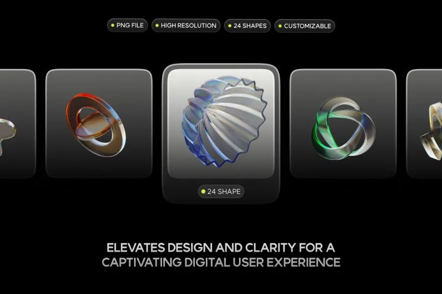 我们独家推出的 3D 独特渐变玻璃造型系列,为您的设计项目增添一抹迷人光彩。这些玻璃造型拥有独特的渐变色和反光表面,营造出令人着迷的视觉效果,非常适合平面设计师、数字艺术家和创意人士,为他们的作品增添精致现代的元素。我们的玻璃造型是品牌推广、数字艺术、网页设计和演示文稿的理想之选,其惊艳的美感和现代风格将为您的项目锦上添花。