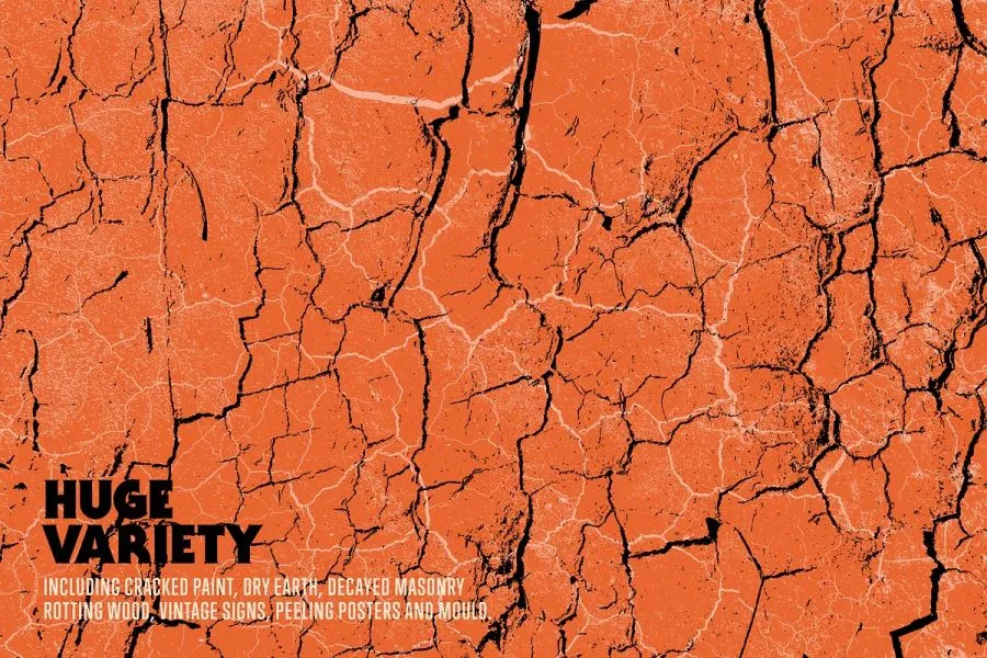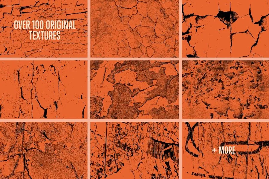 Cracked & Decayed 是超过 100 种破裂、剥落、破损和腐烂纹理的集合,可在您最喜爱的 Adobe 应用程序中使用。该包具有各种各样的纹理,包括破裂的油漆、干土、腐烂的砖石、复古的标志、剥落的海报和霉菌。
